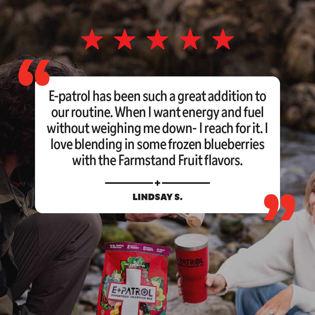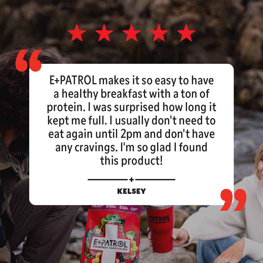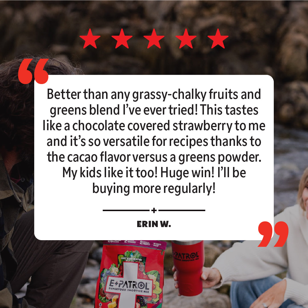 I created E+PATROL out of necessity—I needed fuel that could keep up with the extreme demands of being a ski patroller, from freezing temperatures to high-stakes decisions. Traditional breakfasts left me hungry, and other “super” drinks fell short. So I spent the last 20 years perfecting a blend of protein, superfoods, greens, fiber, and adaptogens to energize my body, sharpen my mind, and sustain me through the longest days and toughest challenges. Now E+PATROL is here to help you do the same: power your day and fuel your future with clean, effective nutrition.