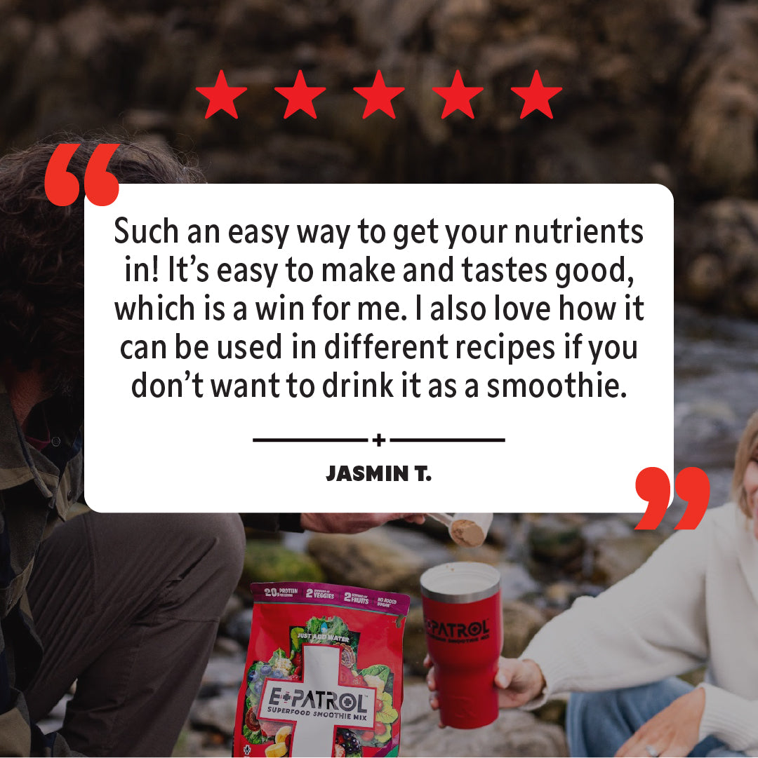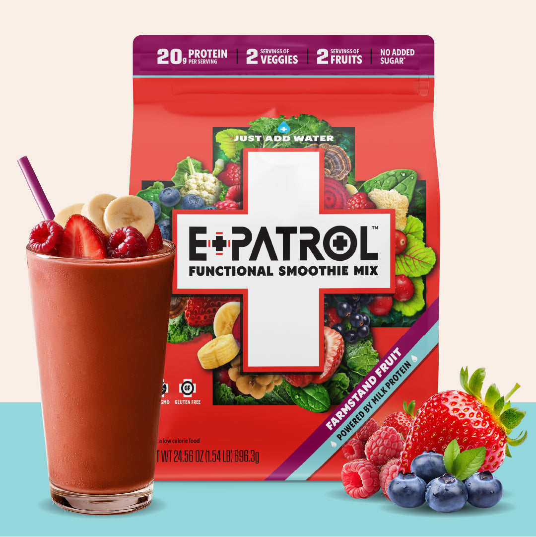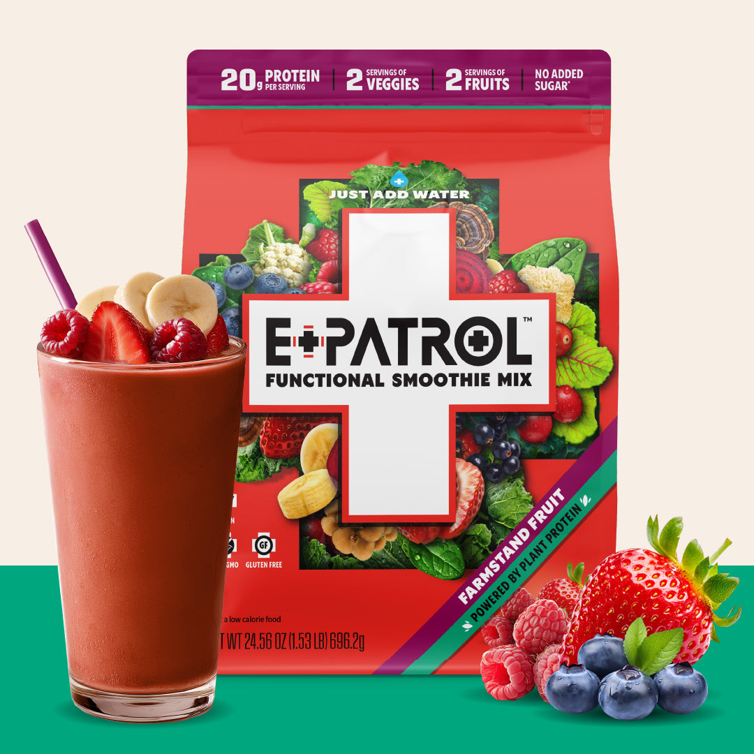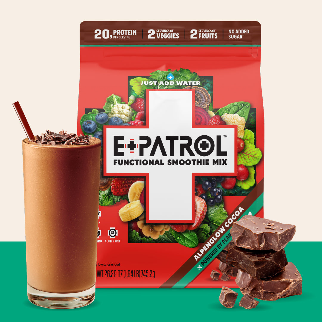 E+PATROL makes veggies, fruit, mushrooms, and functional superfoods the foundation of your diet. Supercharge your health with the world’s first complete, functional smoothie mix.