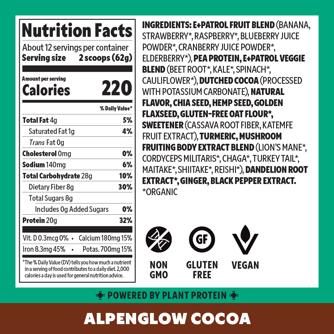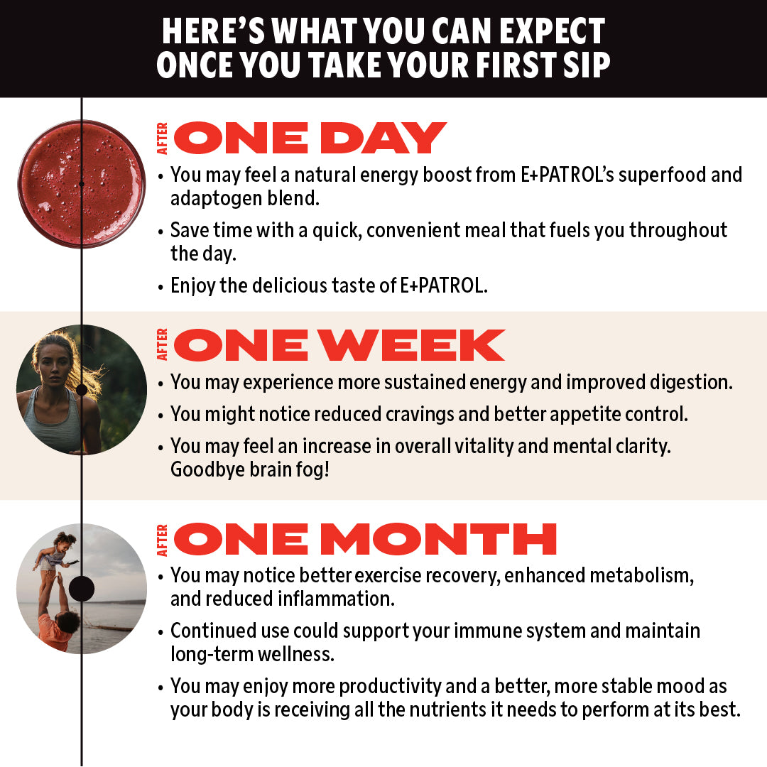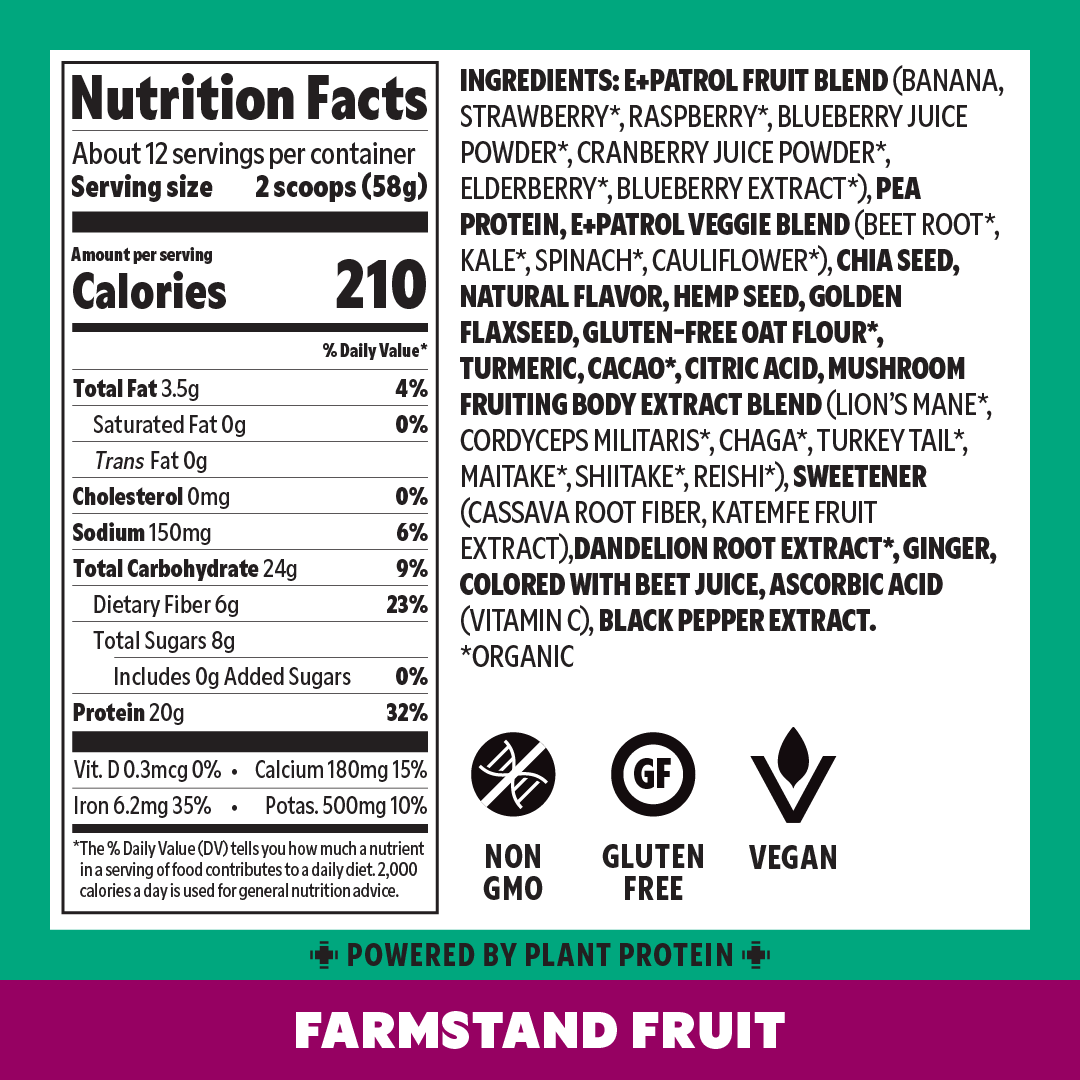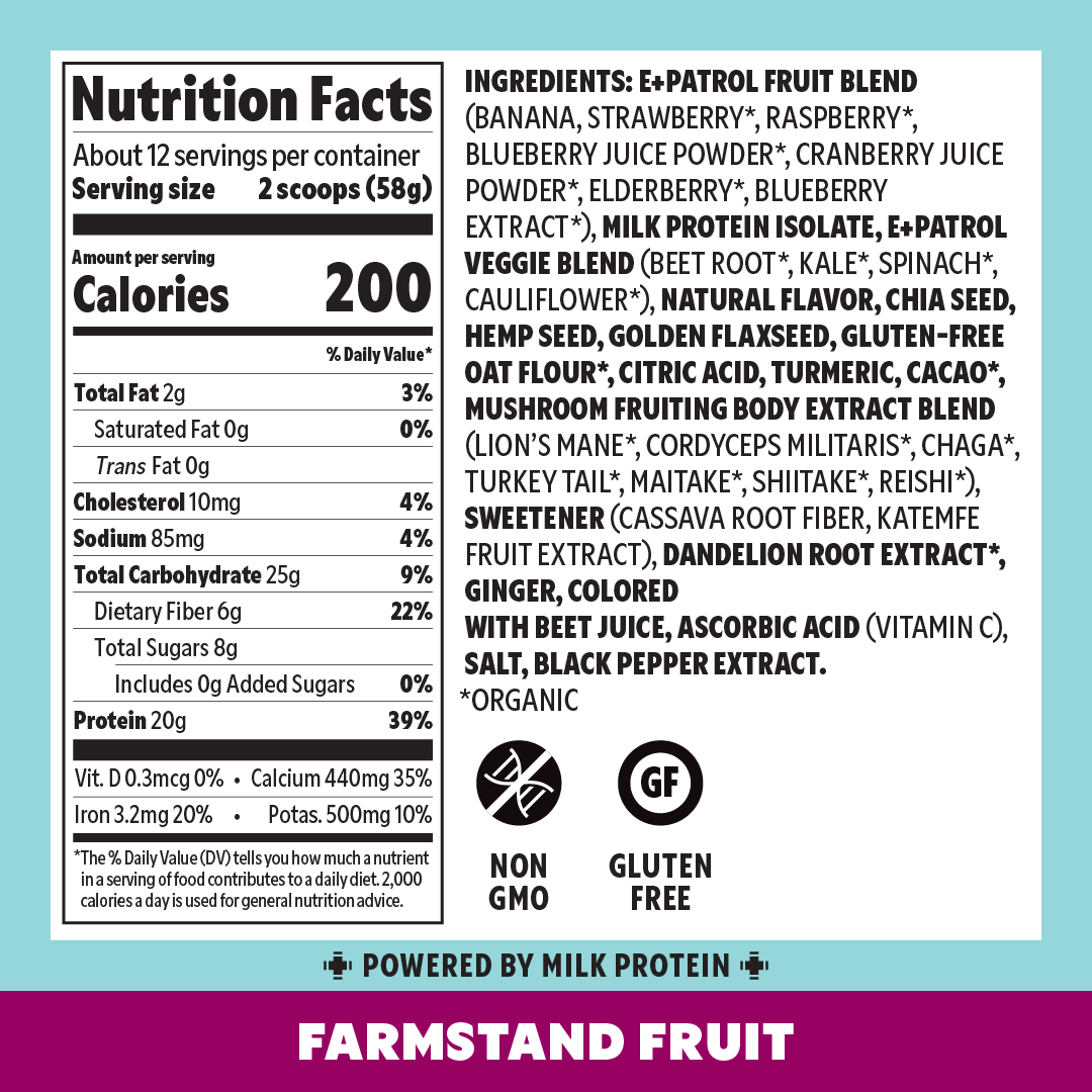 E+PATROL makes veggies, fruit, mushrooms, and functional superfoods the foundation of your diet. Supercharge your health with the world’s first complete, functional smoothie mix.