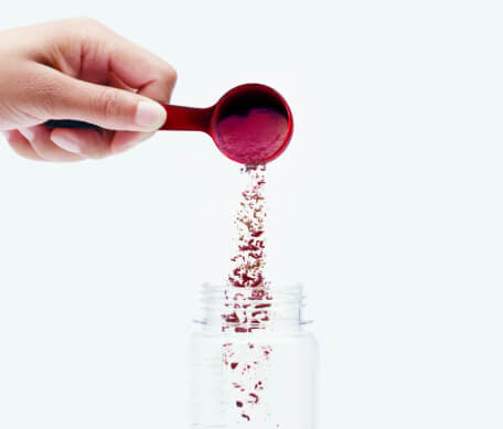 Grab your blender or shaker cup. Measure 6-7 ounces of cold water for 1 scoop of E+PATROL, and 12-13 ounces of cold water for 2 scoops. Or use your favorite milk, milk alternative, or coconut water to make it your own.